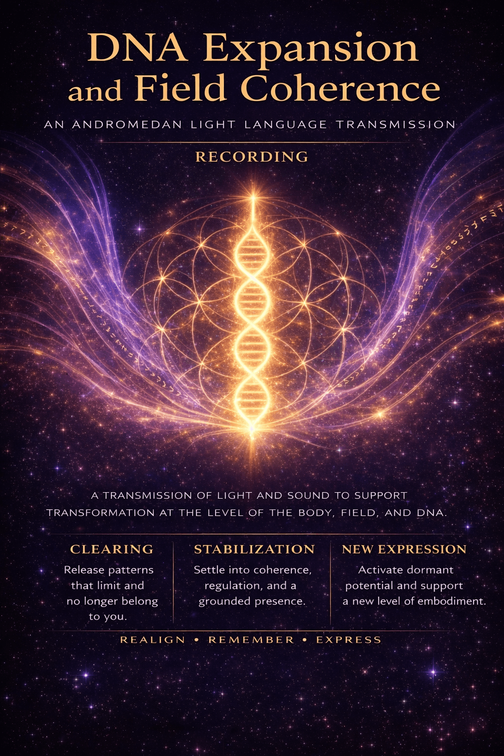 This recording is a live Andromedan transmission designed to increase your body’s capacity to hold light by reorganizing the field around your DNA into coherence.